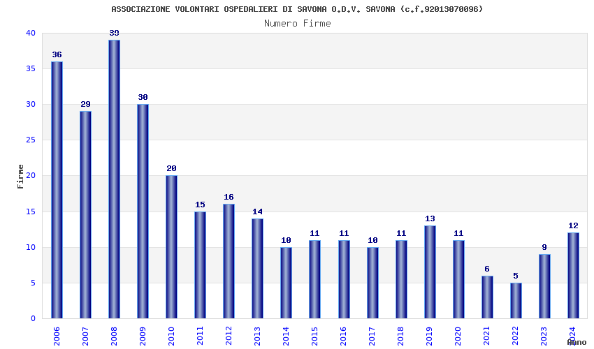 | Anno | Firme | Importi | Media | Naz. | Reg. | Prov. | Comu. |
