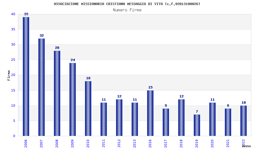| Anno | Firme | Importi | Media | Naz. | Reg. | Prov. | Comu. |