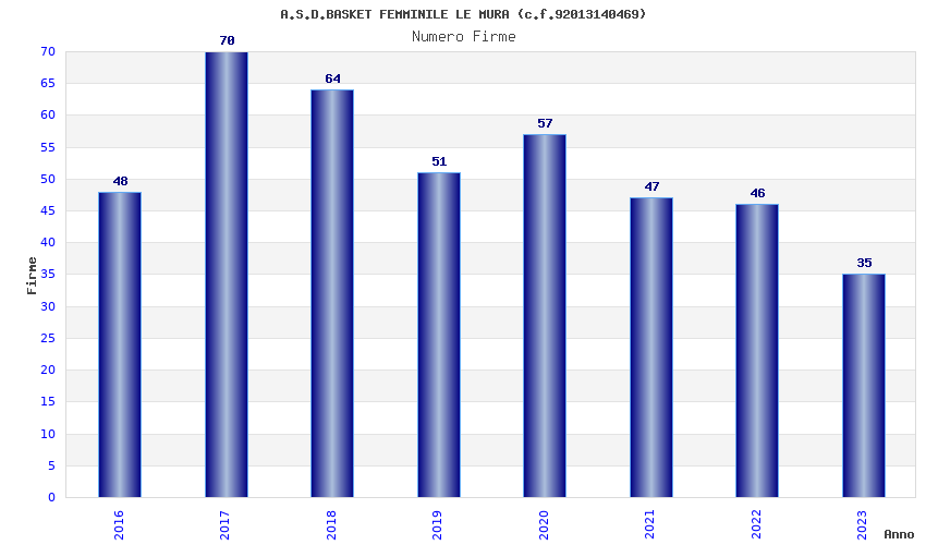 | Anno | Firme | Importi | Media | Naz. | Reg. | Prov. | Comu. |