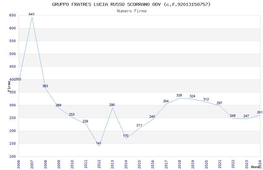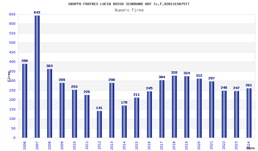 | Anno | Firme | Importi | Media | Naz. | Reg. | Prov. | Comu. |