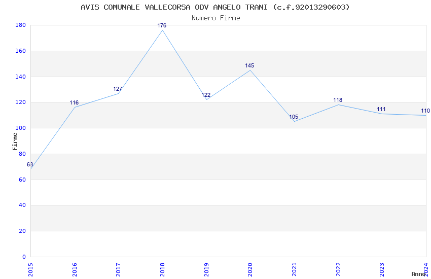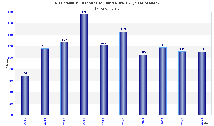 | Anno | Firme | Importi | Media | Naz. | Reg. | Prov. | Comu. |