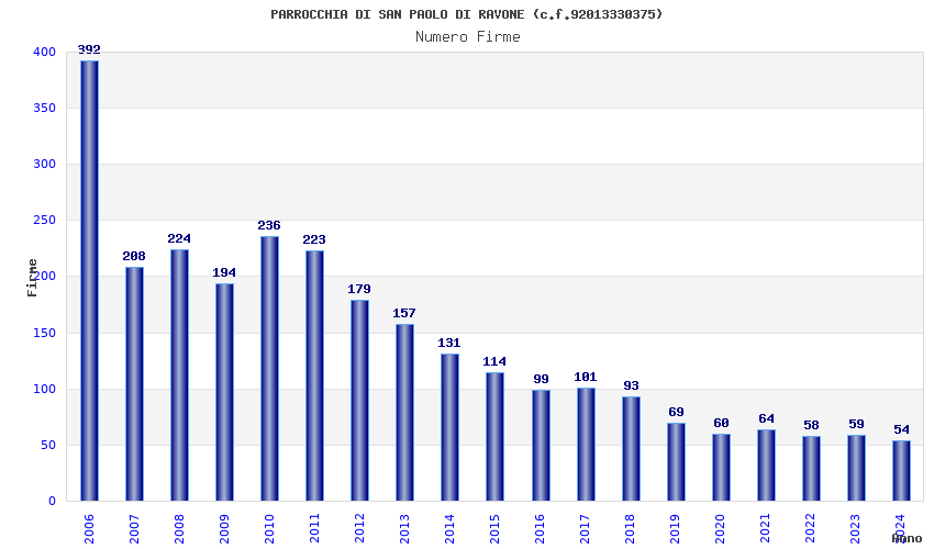| Anno | Firme | Importi | Media | Naz. | Reg. | Prov. | Comu. |