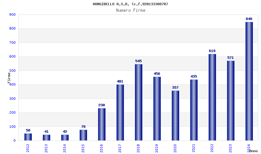 | Anno | Firme | Importi | Media | Naz. | Reg. | Prov. | Comu. |