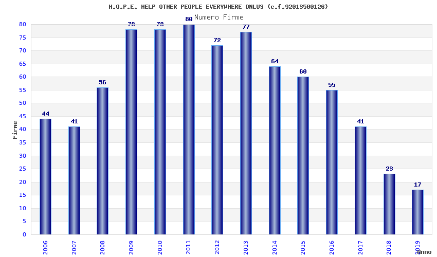 | Anno | Firme | Importi | Media | Naz. | Reg. | Prov. | Comu. |