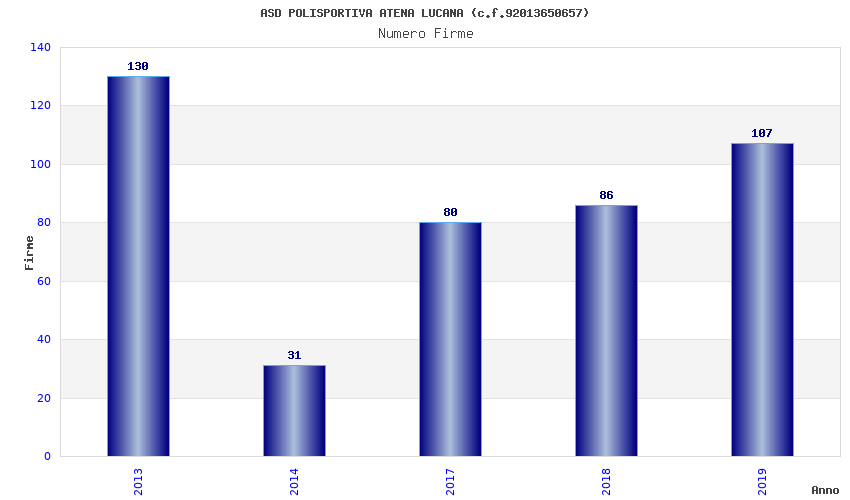 | Anno | Firme | Importi | Media | Naz. | Reg. | Prov. | Comu. |
