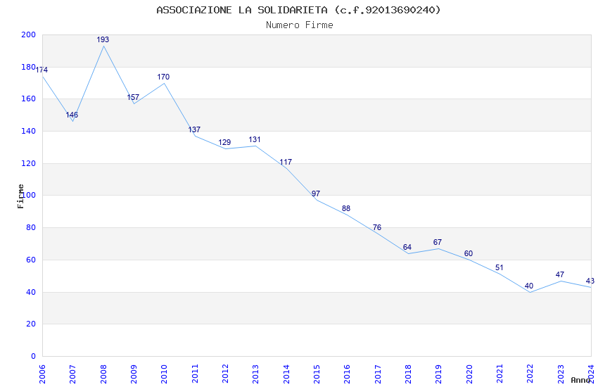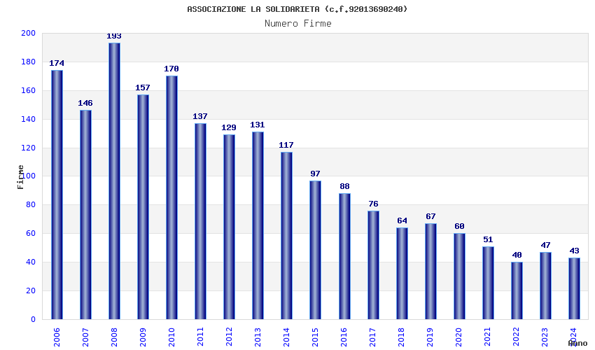 | Anno | Firme | Importi | Media | Naz. | Reg. | Prov. | Comu. |