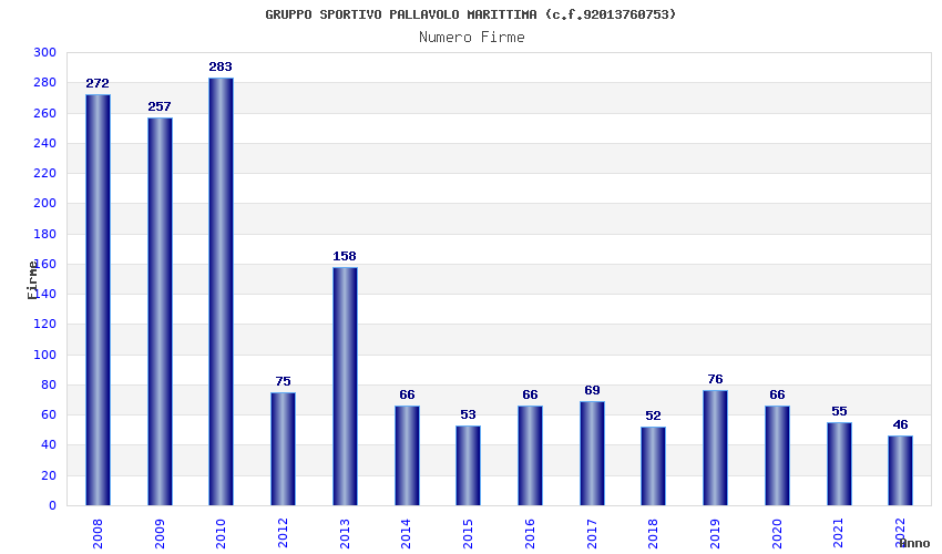 | Anno | Firme | Importi | Media | Naz. | Reg. | Prov. | Comu. |