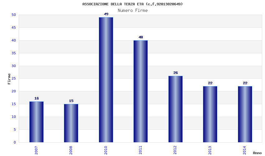 | Anno | Firme | Importi | Media | Naz. | Reg. | Prov. | Comu. |