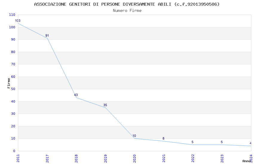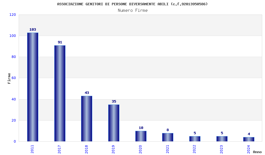 | Anno | Firme | Importi | Media | Naz. | Reg. | Prov. | Comu. |