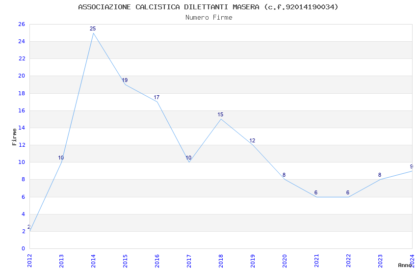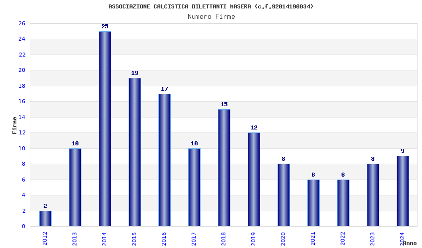 | 2014 | 25 | 592,42 | 23,70 | 37.025 | 3.308 | 129 | 1 |