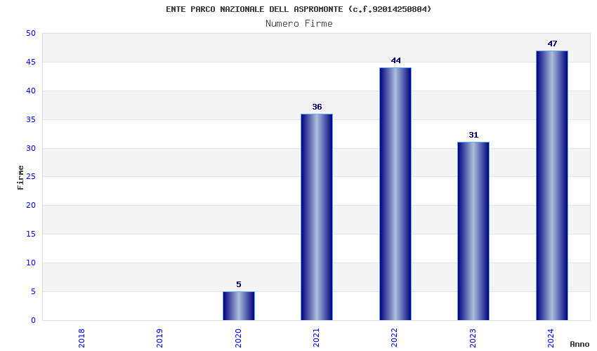 | Anno | Firme | Importi | Media | Naz. | Reg. | Prov. | Comu. |