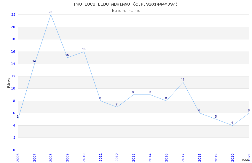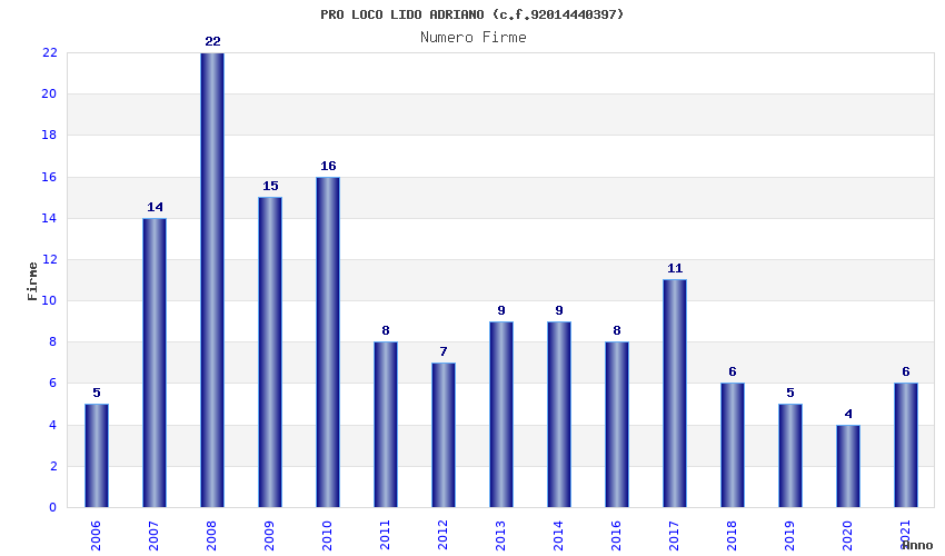 | Anno | Firme | Importi | Media | Naz. | Reg. | Prov. | Comu. |