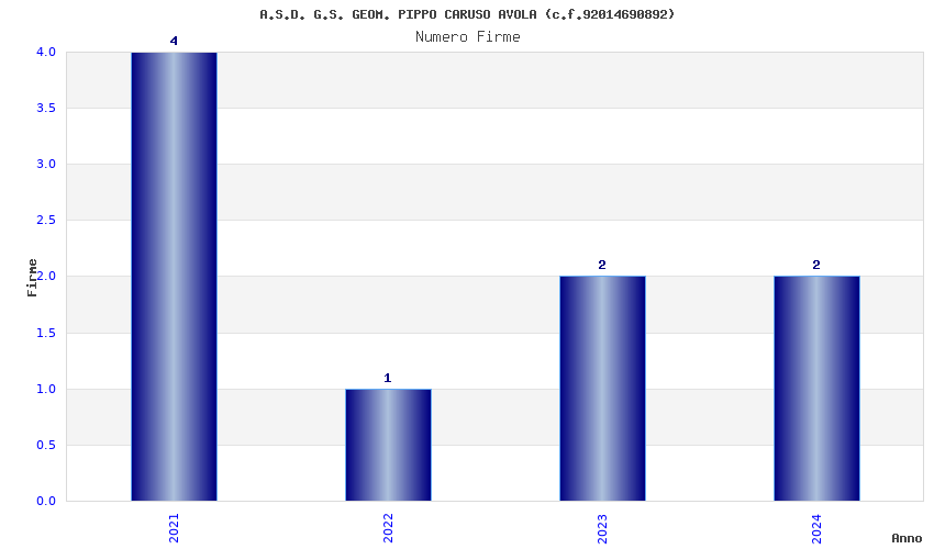 | Anno | Firme | Importi | Media | Naz. | Reg. | Prov. | Comu. |