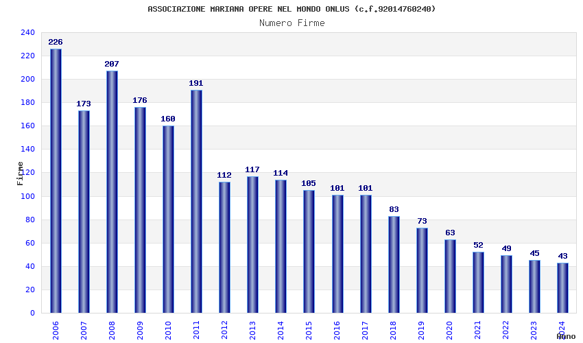 Anno Firme Importi Media Naz. Reg. Prov. Comu.