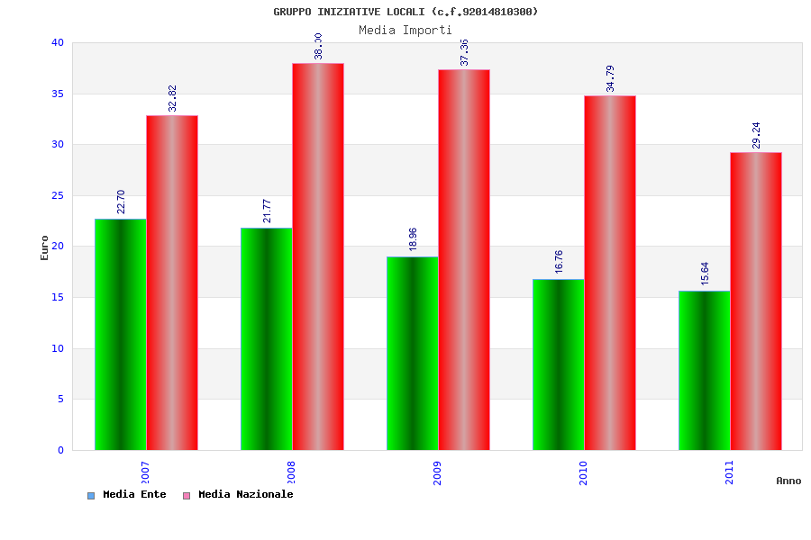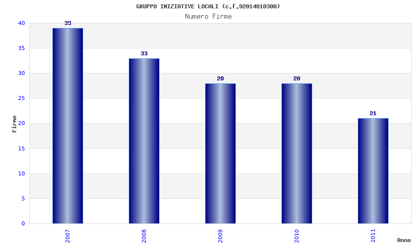 | Anno | Firme | Importi | Media | Naz. | Reg. | Prov. | Comu. |