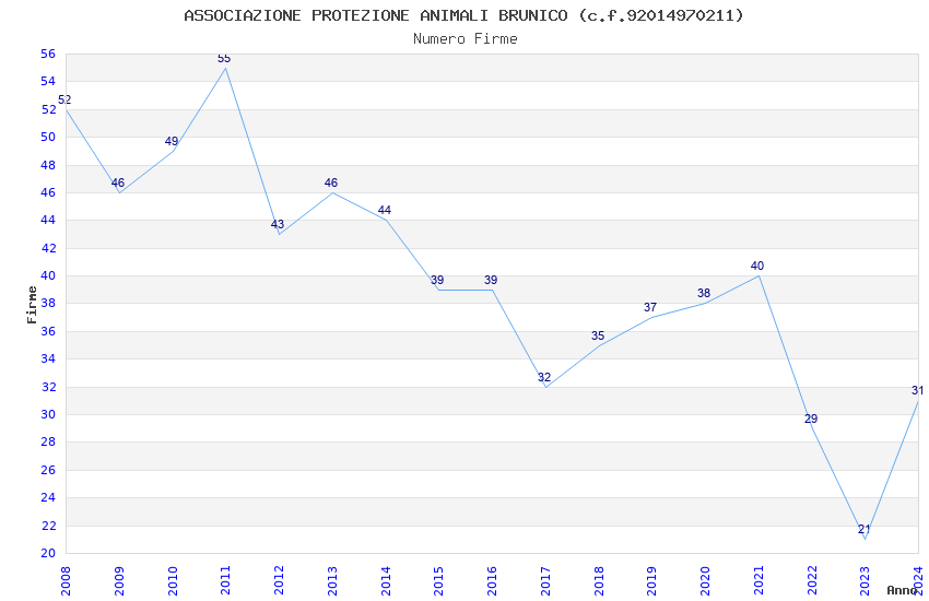 | 2021 | 40 | 1.233,43 | 30,84 | 32.416 | 1.089 | 580 | 2 |