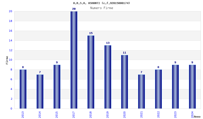 Anno Firme Importi Media Naz. Reg. Prov. Comu.