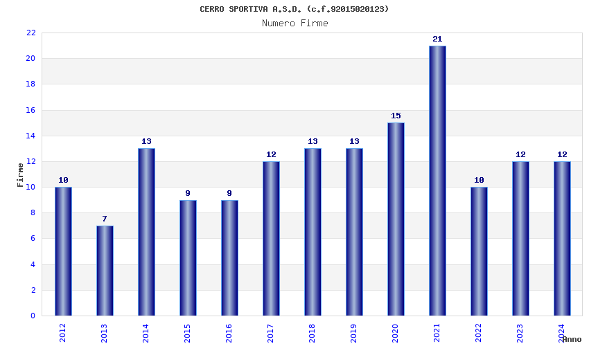 | Anno | Firme | Importi | Media | Naz. | Reg. | Prov. | Comu. |
