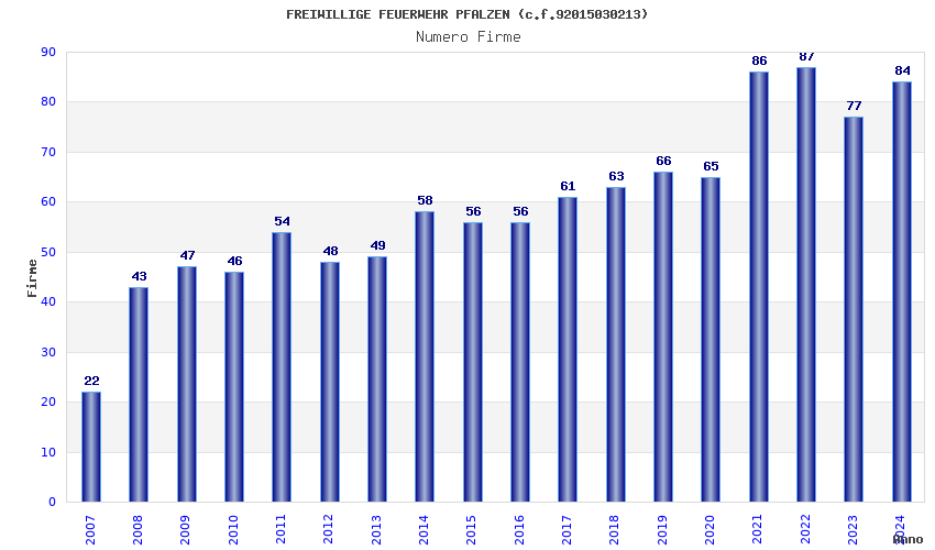 | 2022 | 87 | 5.812,13 | 66,81 | 9.101 | 193 | 110 | 1 |