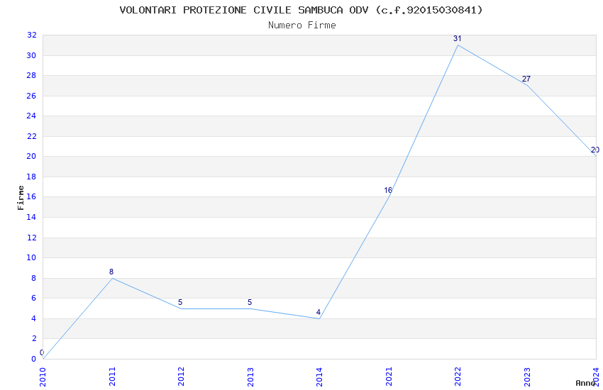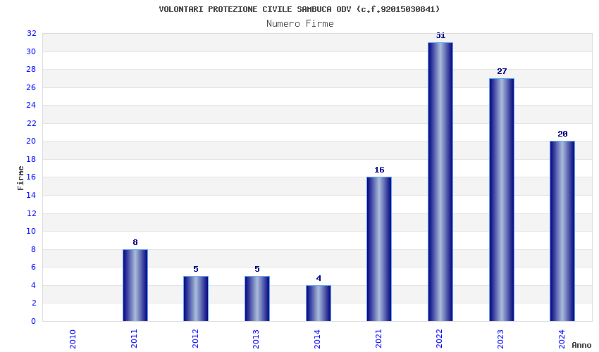 | Anno | Firme | Importi | Media | Naz. | Reg. | Prov. | Comu. |