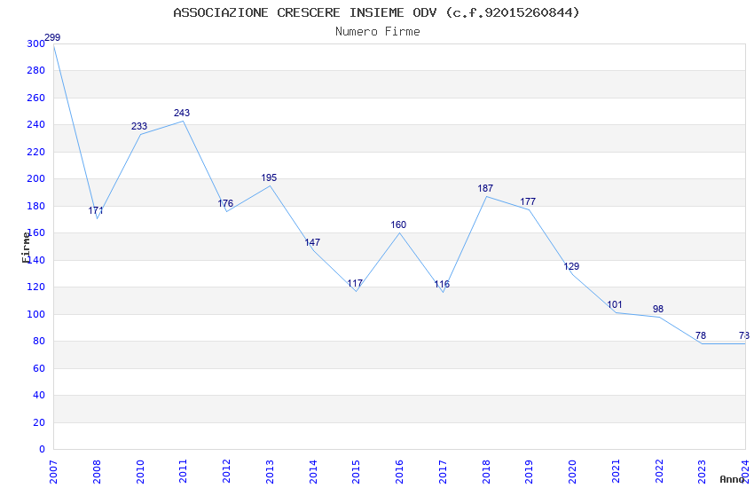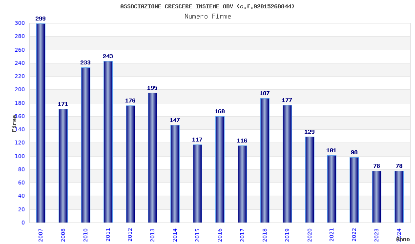 | Anno | Firme | Importi | Media | Naz. | Reg. | Prov. | Comu. |