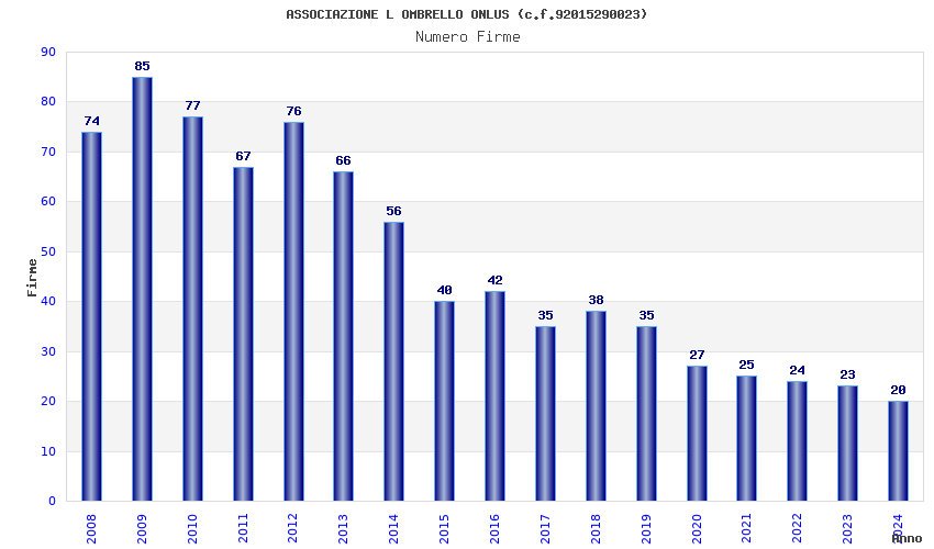 Anno Firme Importi Media Naz. Reg. Prov. Comu.