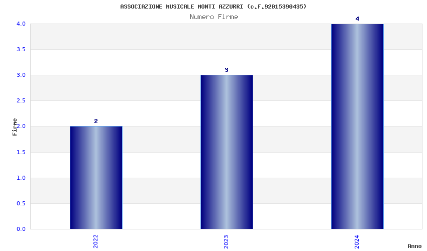 | Anno | Firme | Importi | Media | Naz. | Reg. | Prov. | Comu. |