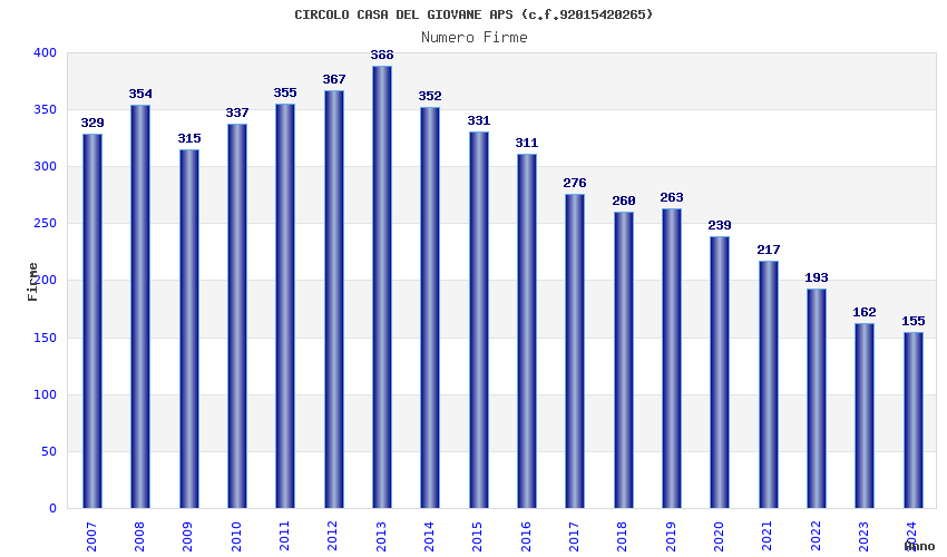 | 2013 | 388 | 6.594,79 | 17,00 | 6.442 | 577 | 83 | 4 |