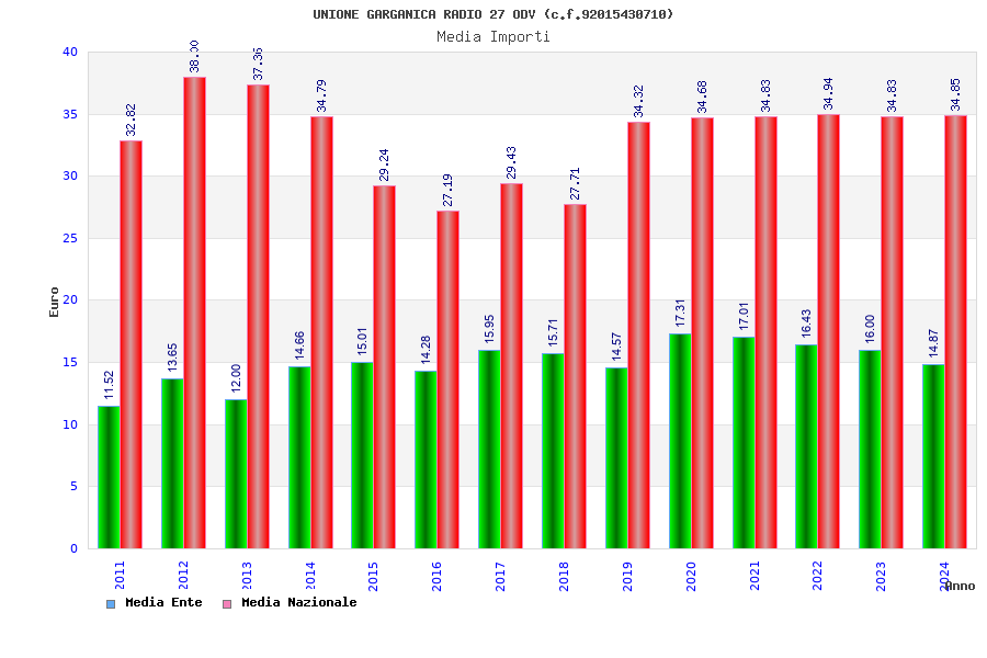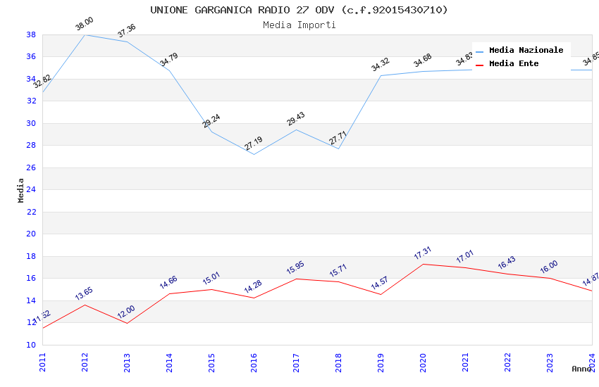 | Anno | Firme | Importi | Media | Naz. | Reg. | Prov. | Comu. |