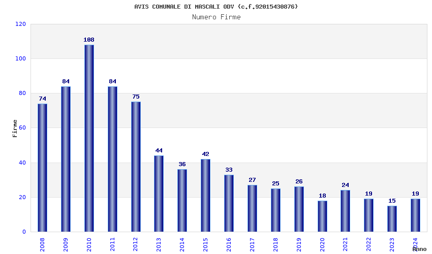 | Anno | Firme | Importi | Media | Naz. | Reg. | Prov. | Comu. |
