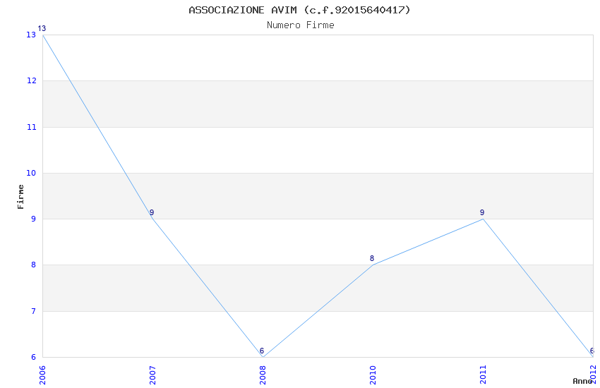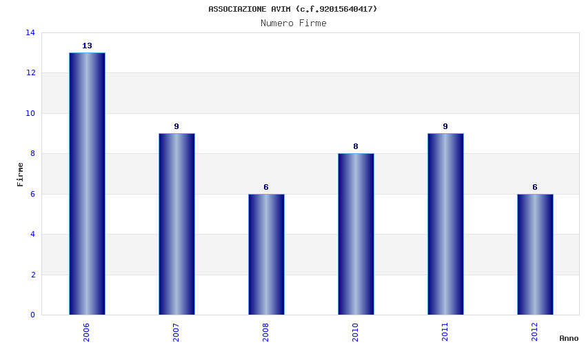 | Anno | Firme | Importi | Media | Naz. | Reg. | Prov. | Comu. |