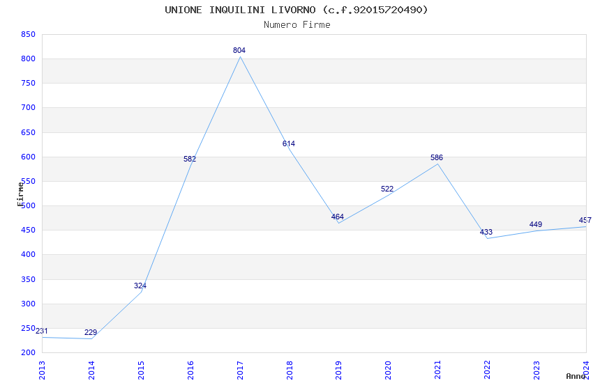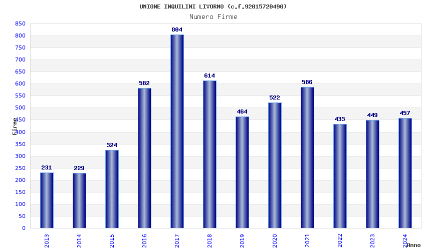 | Anno | Firme | Importi | Media | Naz. | Reg. | Prov. | Comu. |
