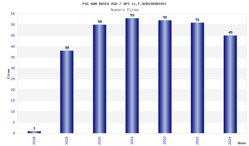 | 2024 | 45 | 1.734,37 | 38,54 | 26.686 | 2.309 | 291 | 4 |