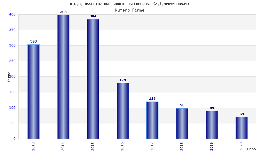 | Anno | Firme | Importi | Media | Naz. | Reg. | Prov. | Comu. |