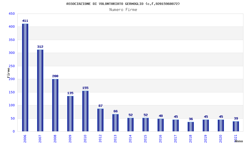 | Anno | Firme | Importi | Media | Naz. | Reg. | Prov. | Comu. |