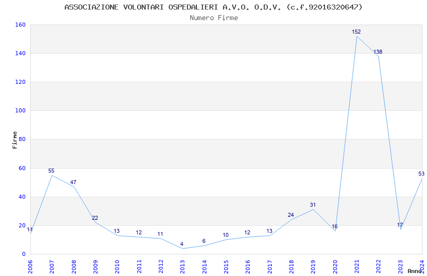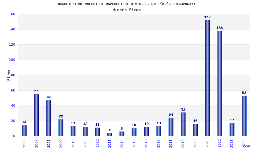 | Anno | Firme | Importi | Media | Naz. | Reg. | Prov. | Comu. |