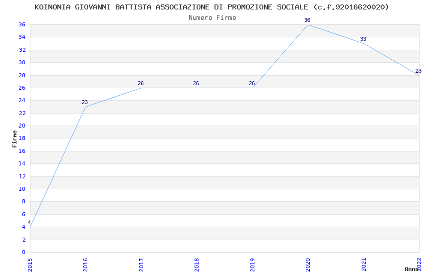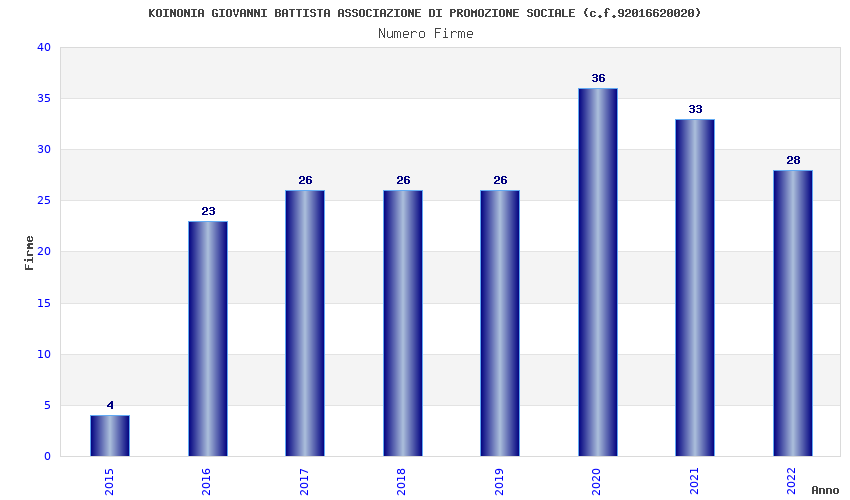 | Anno | Firme | Importi | Media | Naz. | Reg. | Prov. | Comu. |