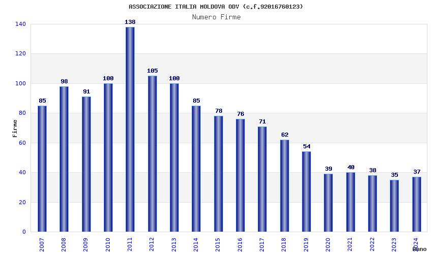 | Anno | Firme | Importi | Media | Naz. | Reg. | Prov. | Comu. |