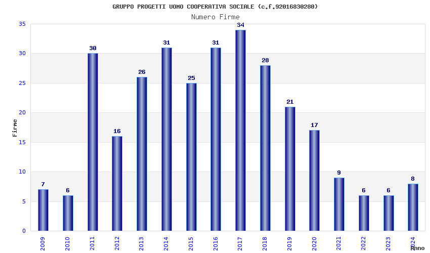 | Anno | Firme | Importi | Media | Naz. | Reg. | Prov. | Comu. |