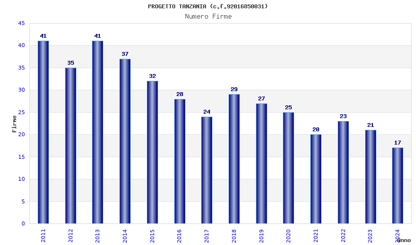 | Anno | Firme | Importi | Media | Naz. | Reg. | Prov. | Comu. |