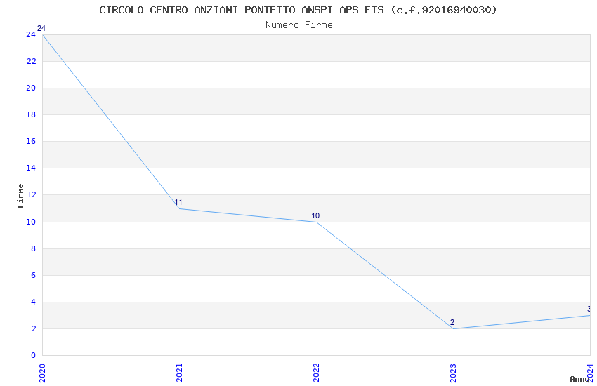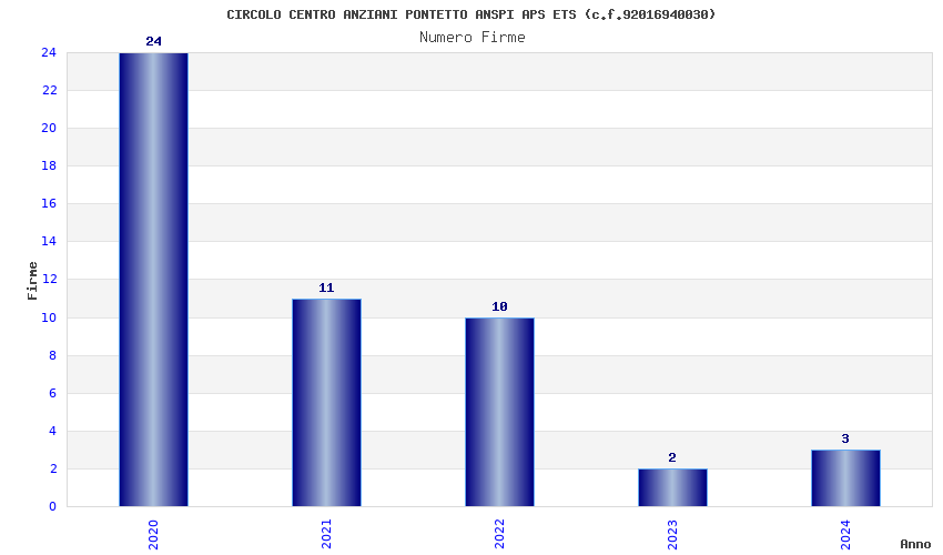| Anno | Firme | Importi | Media | Naz. | Reg. | Prov. | Comu. |
