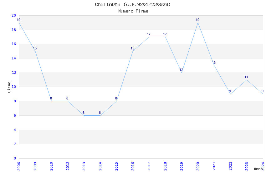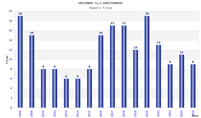 | Anno | Firme | Importi | Media | Naz. | Reg. | Prov. | Comu. |
