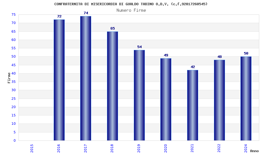 | 2017 | 74 | 2.193,82 | 29,65 | 22.053 | 316 | 249 | 7 |