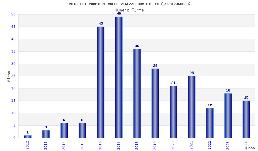 | Anno | Firme | Importi | Media | Naz. | Reg. | Prov. | Comu. |