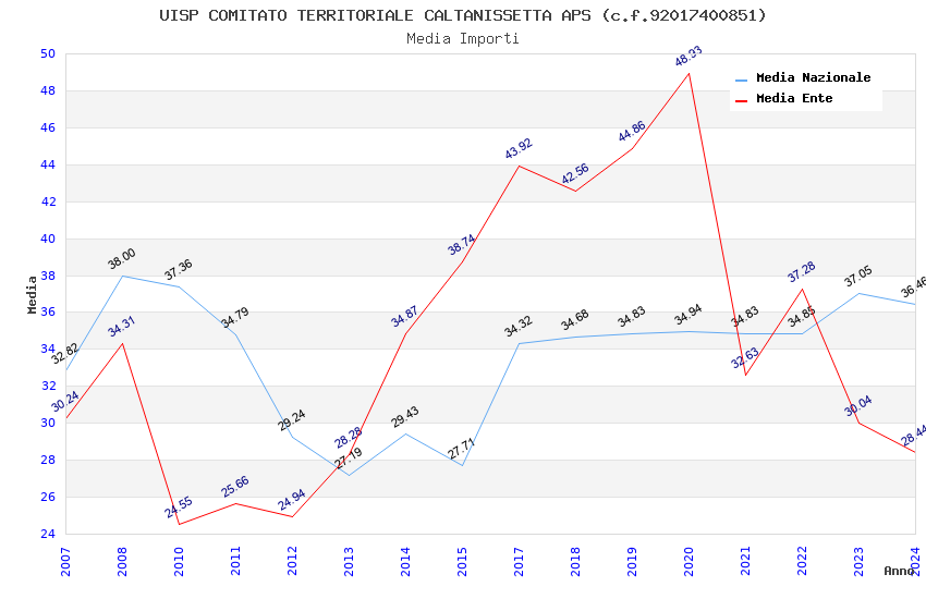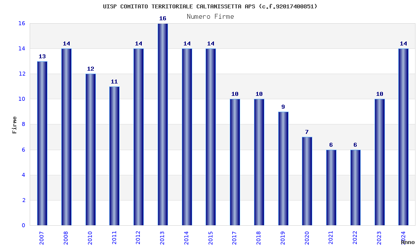 | Anno | Firme | Importi | Media | Naz. | Reg. | Prov. | Comu. |