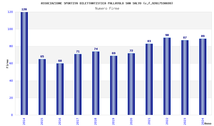 | Anno | Firme | Importi | Media | Naz. | Reg. | Prov. | Comu. |