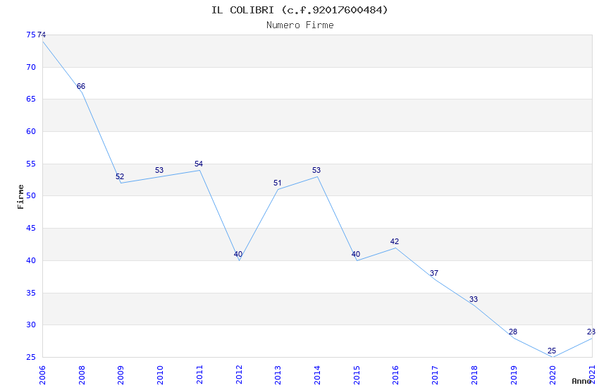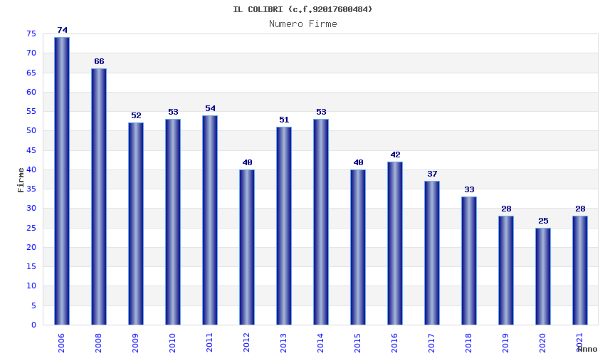 | Anno | Firme | Importi | Media | Naz. | Reg. | Prov. | Comu. |