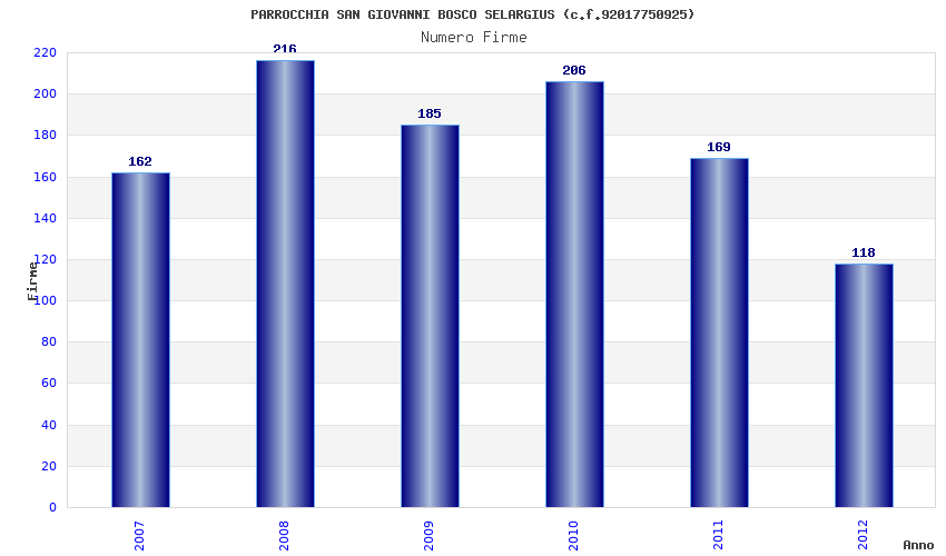 | Anno | Firme | Importi | Media | Naz. | Reg. | Prov. | Comu. |