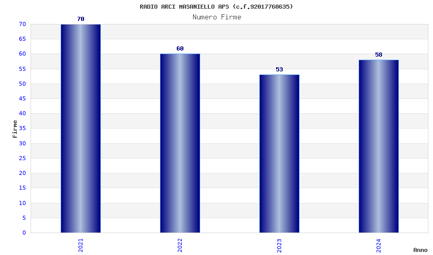 | Anno | Firme | Importi | Media | Naz. | Reg. | Prov. | Comu. |