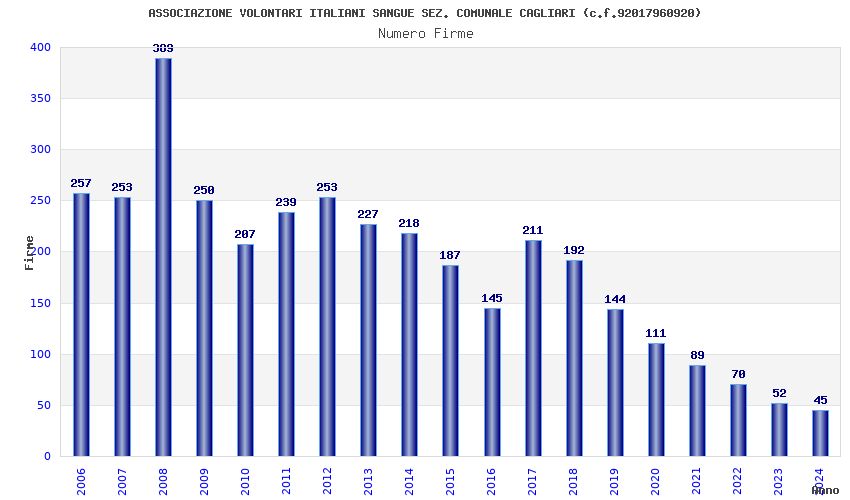 | Anno | Firme | Importi | Media | Naz. | Reg. | Prov. | Comu. |
